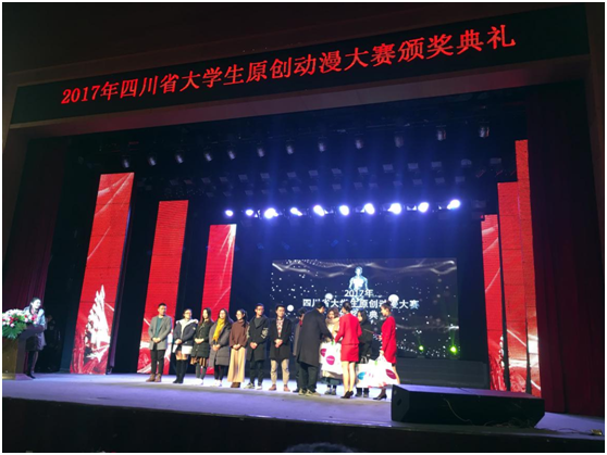 2017年12月20日,2017年四川省老员工原创动漫大赛颁奖典礼在四川传媒公司艺术交流中心举行。公司申博sunbet影像动画系教师陈鹏、孙浩章、董海斌、苍慜楠、郭洁恩、王鹏、王玮等8位教师指导的员工作品一举夺得一等奖2个、二等奖5个、三等奖6个;动画专业教师王鹏、郭洁恩获优秀指导教师奖,陈鹏副教授指导的员工作品《捣练》荣获全场大奖。