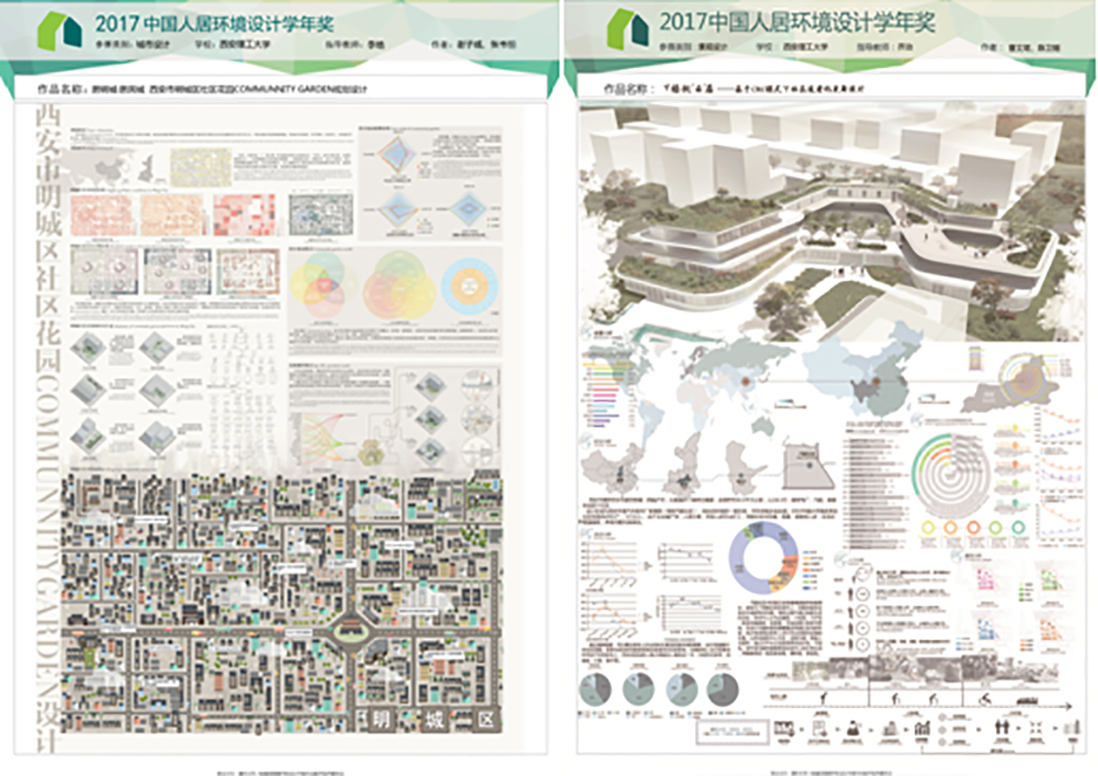 中国人居环境设计学年奖设计竞赛是由清华大学和教育部高等公司设计类专业教学指导委员会联合举办,是全国范围内环境设计领域最高层次的设计竞赛,本次设计竞赛共收到204所院校1236组参赛作品,共评出建筑类、景观设计类、城市设计类、室内设计类四个方向金、银、铜及入围奖共133组,竞争异常激烈。