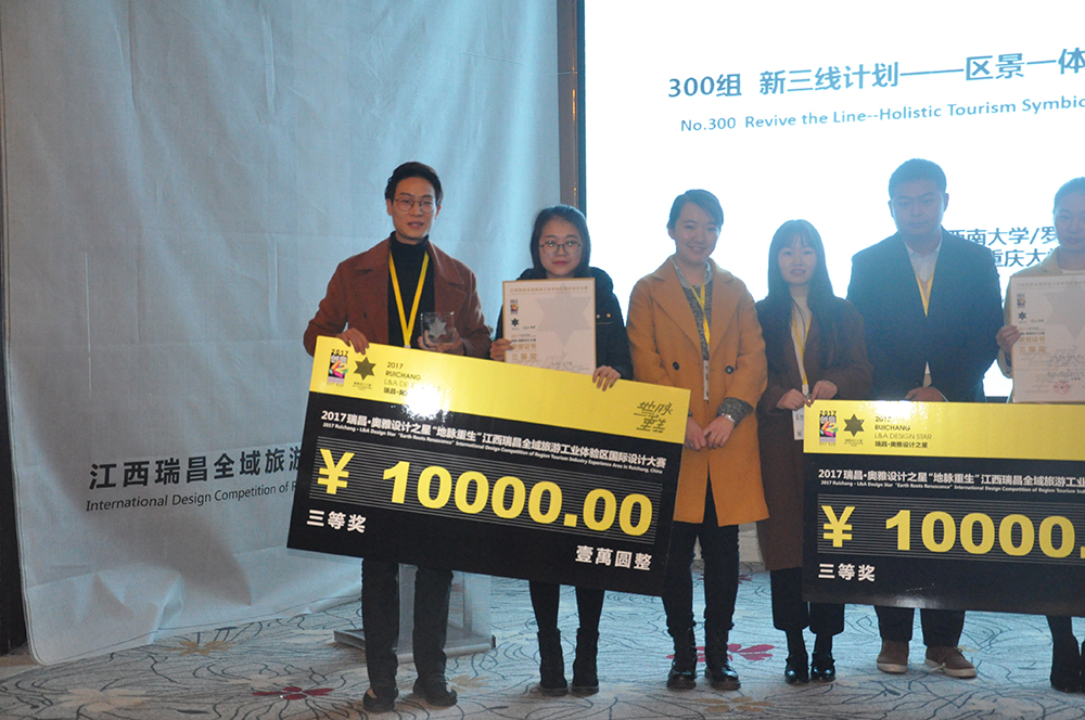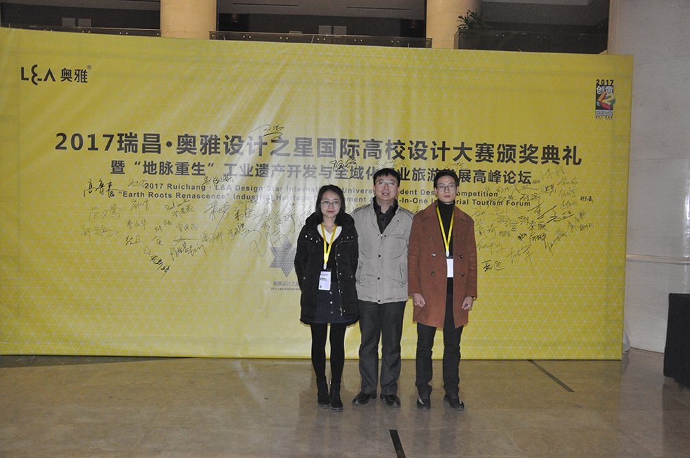 12月23日,在 2017瑞昌•奥雅设计之星国际高校设计大赛颁奖典礼暨“地脉重生”工业遗产开发与全域化工业旅游发展高峰论坛,由公司环境设计系乔治、李皓老师指导的本科四年级员工郑崇栋、范文鹭设计作品《多元共生,船承融声》,在本次竞赛中荣获三等奖,奖金10000元。公司环境设计系乔治、李皓教师荣获本次竞赛优秀指导教师奖。两名获奖同学及指导教师李皓老师受邀共同到达江西瑞昌论坛现场对其作品进行了讲解。