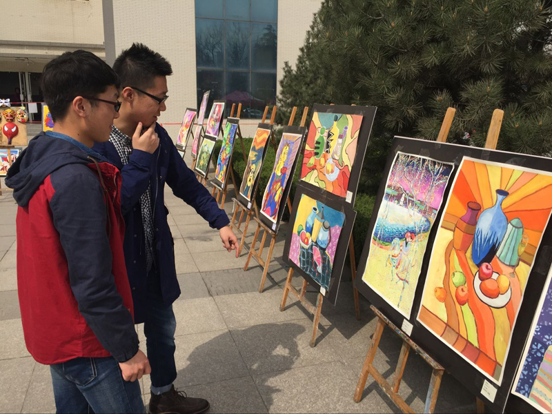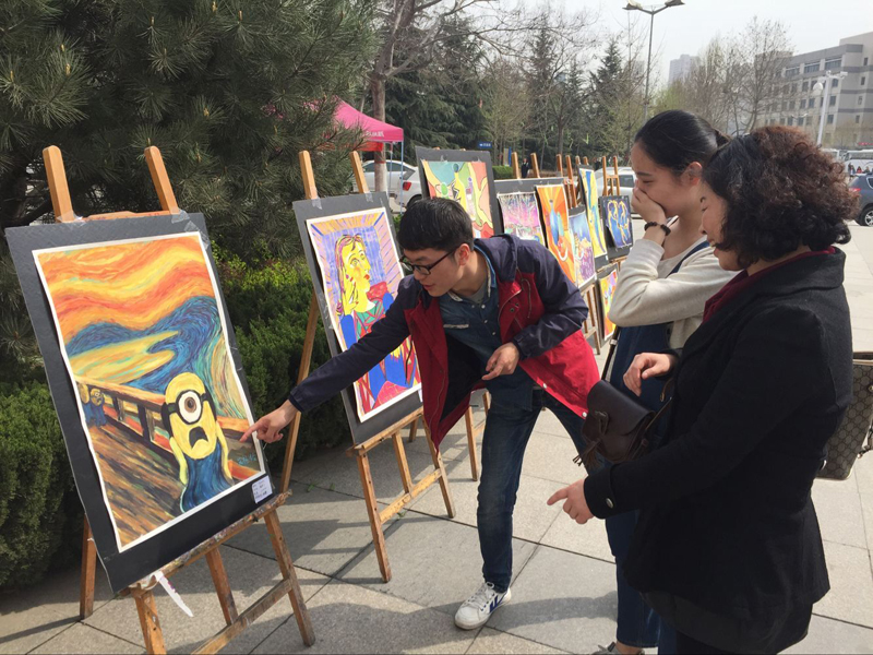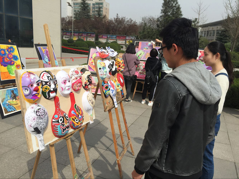 3月29日,申博sunbet在曲江校区逸夫科技信息馆广场举办雕塑专业色彩画展,包含了绘画、脸谱、马勺等设计作品50余件,主题鲜明,风格独特,形式多样。