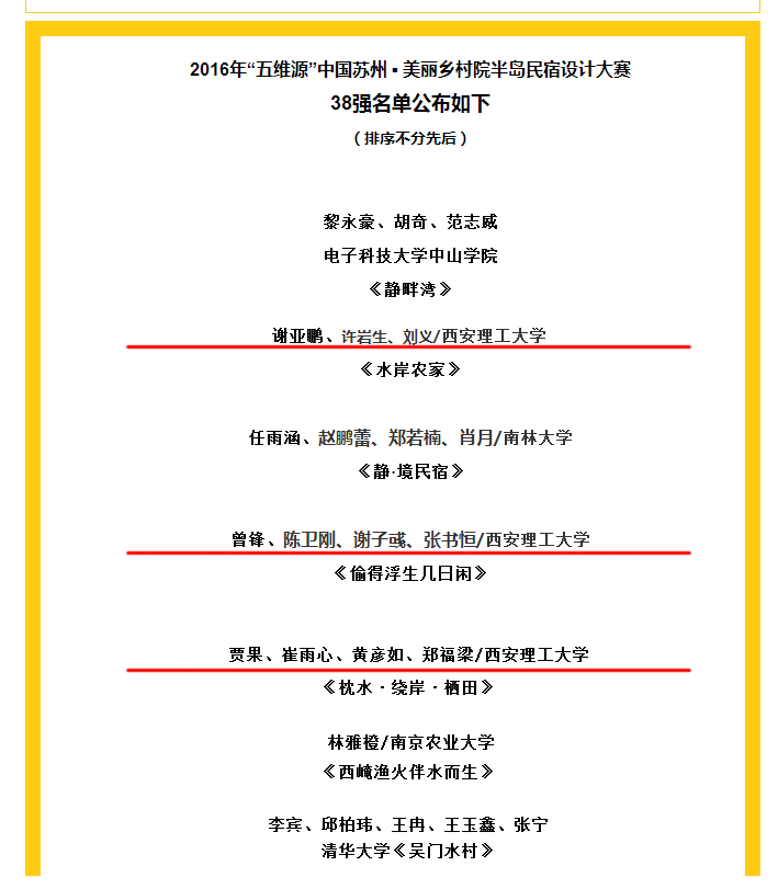近日,公司申博sunbet环艺系员工谢亚鹏、许岩生的作品《水岸农家》,员工贾果、崔雨心、黄彦如、郑福梁的作品《枕水·绕岸·栖田》,员工曾锋、陈卫刚、谢子彧、张书恒的作品《偷得浮生几日闲》,成功入围2016年“五维源”中国苏州 ▪ 美丽乡村与半岛民宿设计大赛前38强,值得庆贺。