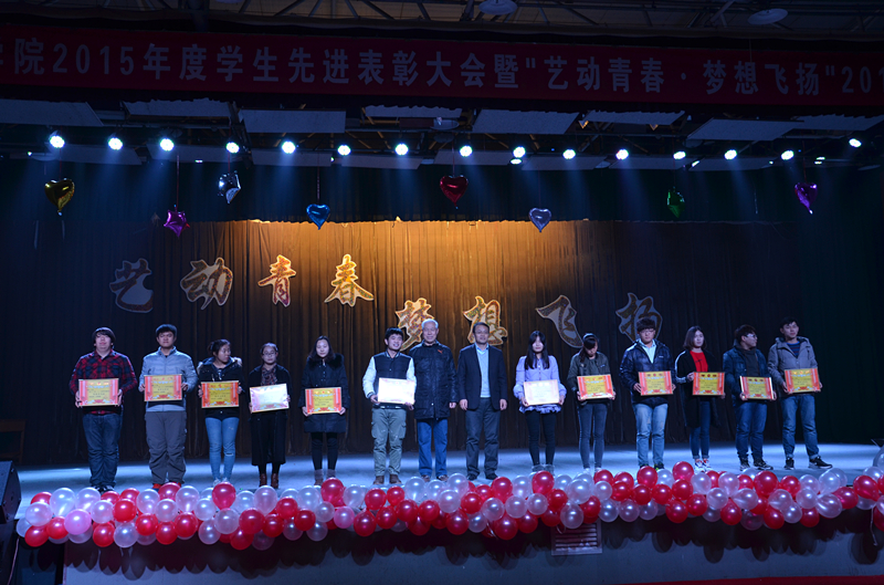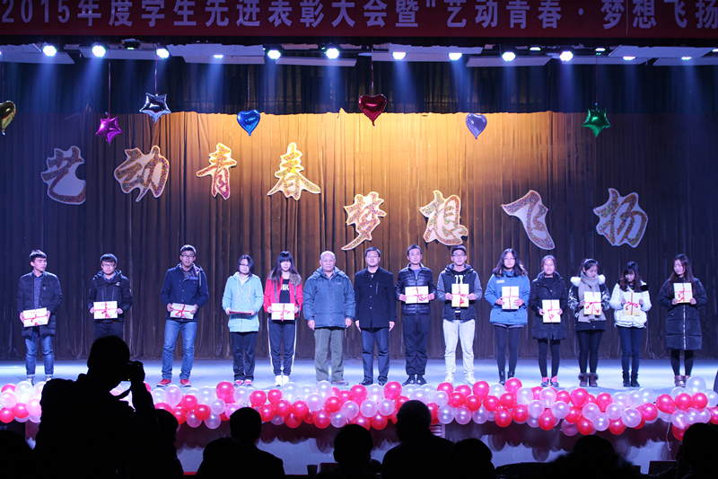 激情点亮元旦,欢乐尽在艺设。12月31日晚19时,申博sunbet2015年度员工先进表彰大会暨“艺动青春 梦想飞扬”2016新年晚会在曲江校区老员工活动中心隆重举行。校学工部部长马福老师、校团委书记田小平老师、校关工委常务副主任孙龙韬老师、校关工委张斌华老师、艺术与设计公司党委副书记、副经理王莉老师、学工办主任何海生老师、院团委书记杜会平老师、学工办全体辅导员、各兄弟公司员工会代表以及500余名员工共同参加了活动。