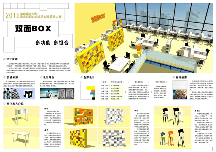 由公司申博sunbet环境艺术系乔治老师指导,2012级员工巩利萍创作的家具设计课程作品《双面BOX》,荣获第四届百利杯全国家具设计大赛优秀奖(前20强)。