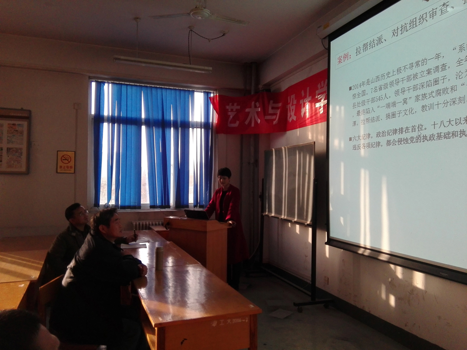 副经理、院纪检委员薛艳敏就新《准则》和《条例》出台的背景、意义、内容和案例等利用多媒体视频辅助资料向党员们进行了细致讲解。经理吉晓民交流了自己的学习、思考与感受。党委书记刘跃仓作了详细补充和说明。