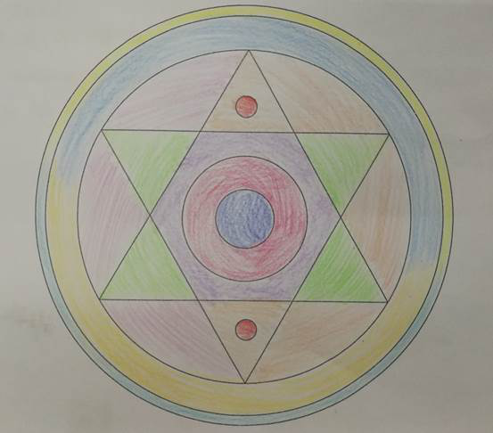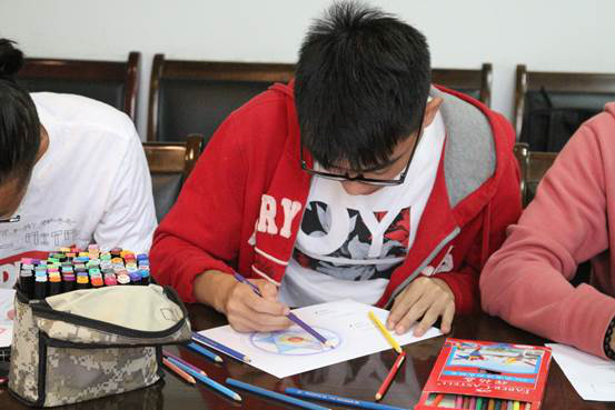 程瑛老师向现场师生简要讲解了曼陀罗绘画发展历史及其功能。随后,每位师生都拿到了绘有不同的图案的曼陀罗绘画纸,随着舒缓的音乐,大家在程老师的引导下慢慢处于放松状态,从准备阶段进入绘画阶段,大家跟随自己的感觉,用一支支彩笔选择自己喜欢的颜色绘制属于自己的曼陀罗作品。绘制完毕,大家将自己的作品和绘制感受进行了交流与分享。