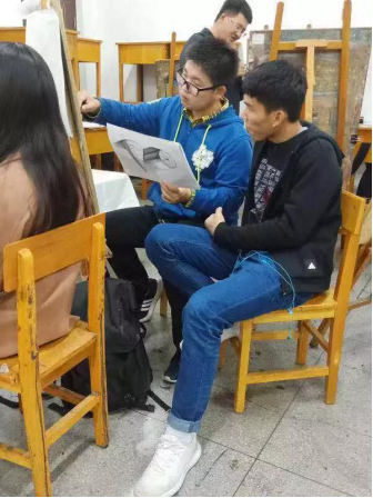在这里,不同公司不同专业的同学聚在一起相互交流,小老师们与同学们面对面,临摹图片,在素描纸上一笔一笔勾勒着,讲解如何握笔,如何排线,如何精确打形,如何过度明暗,如何点高光。。。。。。这不仅仅是简单的教与学的过程,更是一次人与人之间心灵的碰撞,大家在艺术的殿堂里,共同畅游着!