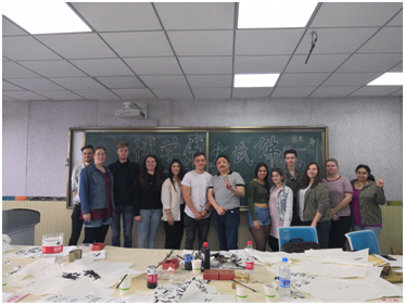 4月23日上午,申博sunbet为到访的德国斯图加特媒介大学12位同学准备了一场生动有趣的书法课,该课程由公司副教授赵新平使用英语完成授课。