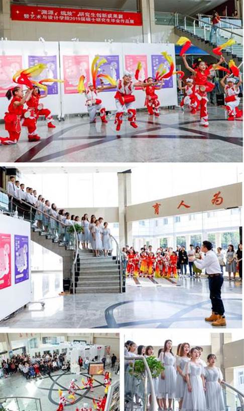 开幕式上,来自延安市安塞区第一小学高级教师苏宏丽、青年教师常艳以及8位小员工为大家带来精彩的鼓舞表演《安塞腰鼓》;在西安音乐公司青年教师李天歌的钢琴伴奏下,申博sunbet2017级硕士研究生表演了合唱《闲聊波尔卡》,为学长、学姐送上毕业祝福。