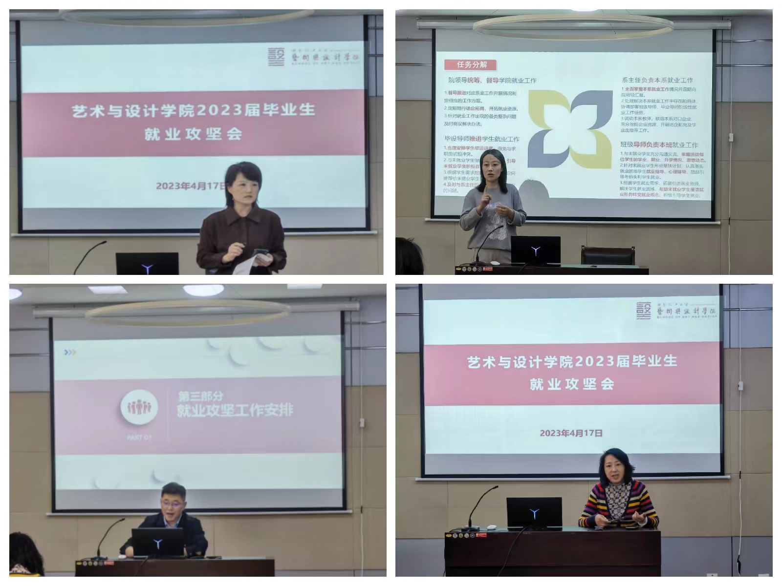 随后,薛艳敏经理在讲话中再次强调了就业工作的重要性和公司就业工作的紧迫性。她指出,高质量就业是公司人才培养质量的集中体现,是公司得以发展的生命线。她要求院班子、各系负责人、本科毕业班导师、硕士生导师、毕业班辅导员要提高认识,要有紧迫感,要加大力度推进就业工作,完成公司的就业目标。全院上下都要紧张起来,动起来,充分挖掘就业资源,用“人盯人”“一对一”的方式把2023届毕业生的就业工作做细做实。