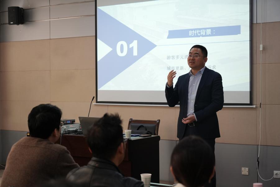 4月7日下午,公司公共艺术教育论坛邀请国家旅游英才、陕西历史文化使者、中旅华山旅游有限责任公司王凯鹏总经理开办题为《沉浸式文商旅项目激活文化空间与都市生活体验》的专题讲座。讲座由申博sunbet副经理孙浩章教授主持,师生近百人参与了讲座。
