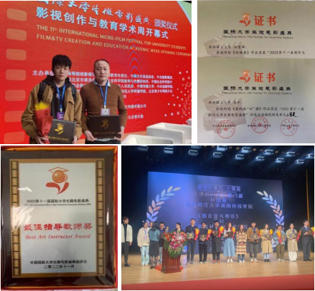在11届国际老员工微电影盛典终评中,公司申博sunbet影像动画系两部作品获三等奖:动画专业李宇同学作品《桑纸振“兴”疆》获微短视频单元三等奖,摄影专业刘慧珊同学作品《刘媒婆》获纪实片单元三等奖;公司教师董海斌、罗斌获最佳指导教师奖。