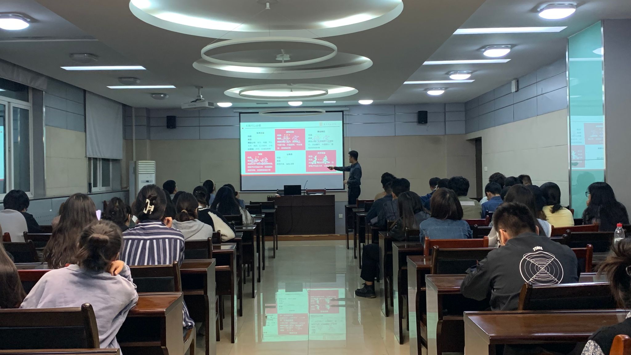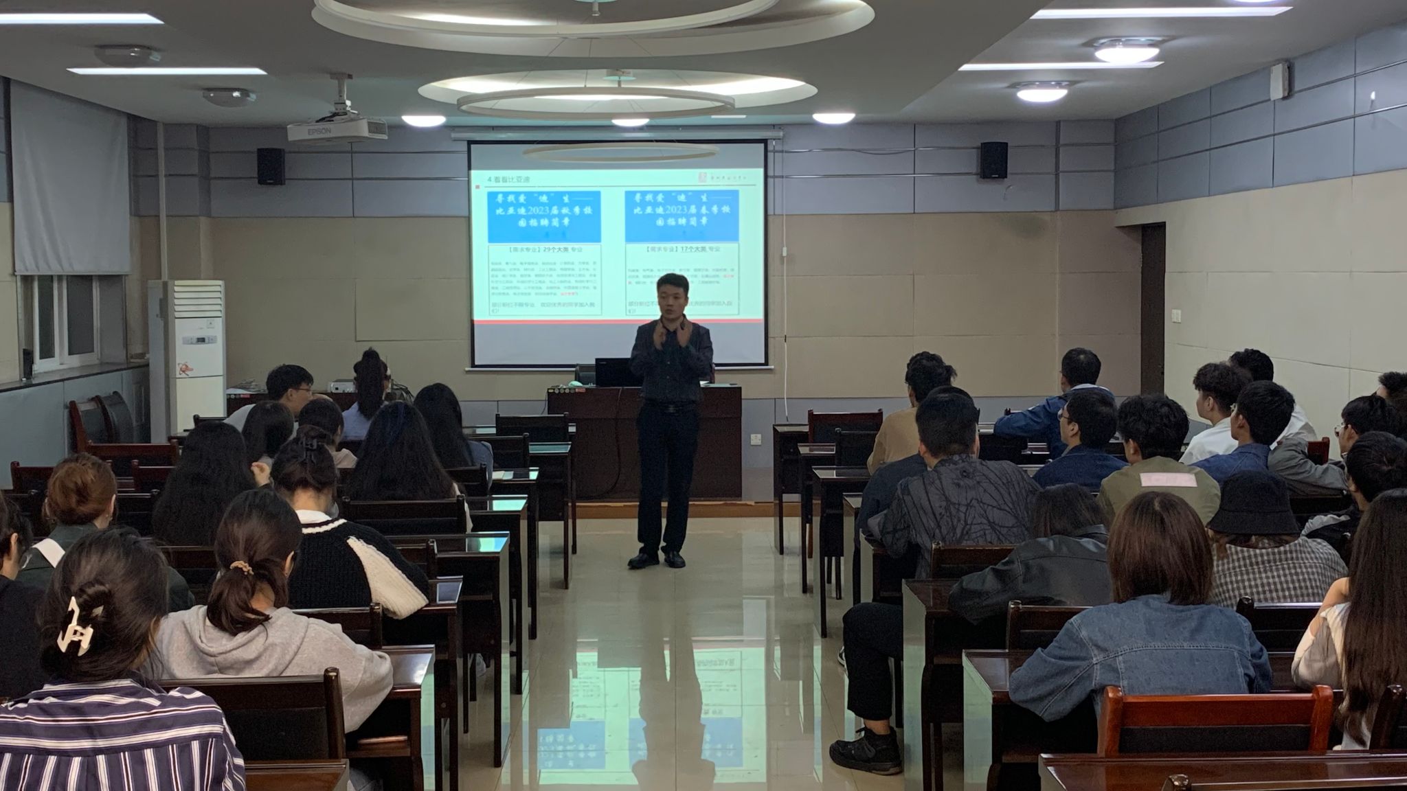 会上,郑智聪从市场经济、就业形势、秋招优势等宏观角度入手,对2024届毕业生就业状况进行分析,再从企业招聘细则、往届毕业生去向等微观角度定位,指导员工做好职业选择、职业规划,实现优质就业。