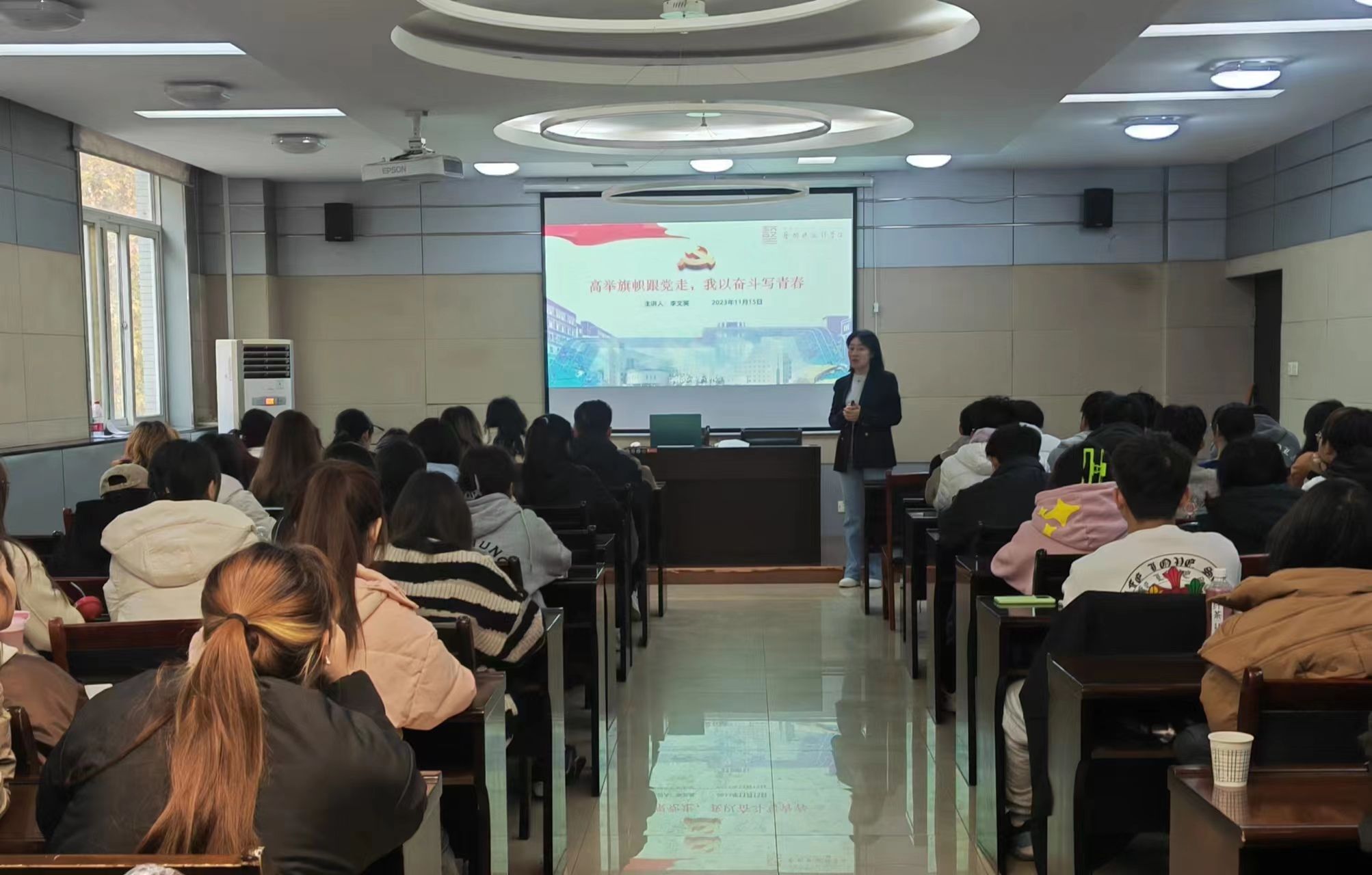 开班仪式结束后,李文英作了题为《高举旗帜跟党走,我以奋斗写青春》的专题培训。从马克思主义、中国共产党、青春奋斗三个方面讲述,希望同学们立志做有理想、敢担当、能吃苦、肯奋斗的新时代好青年,把青春奋斗融入党和人民事业,在实学实干中长志气、强骨气、厚底气,在强国征程的火热实践中练就过硬本领,在青春的赛道上奋力跑出最好成绩。