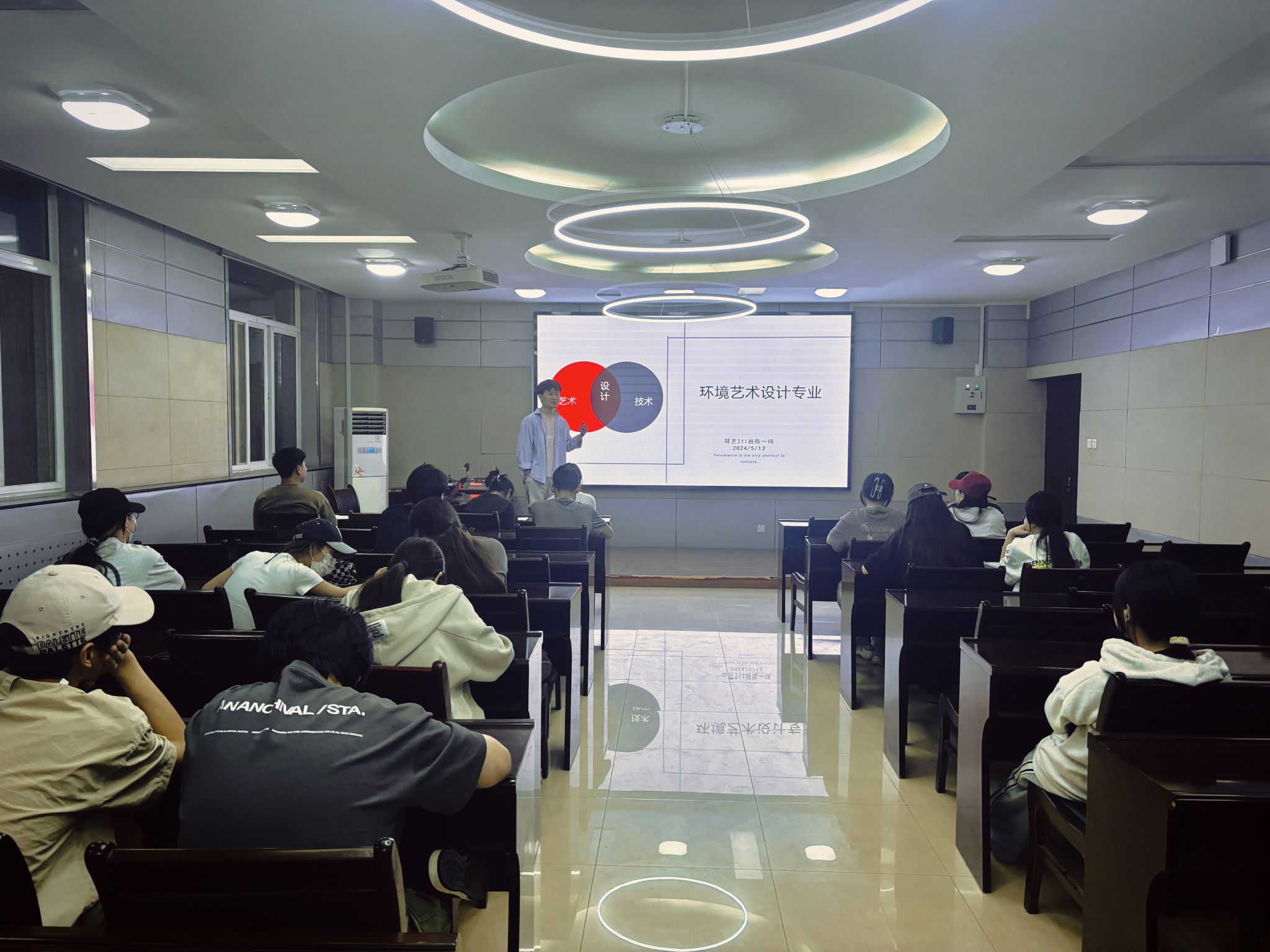 首先,曹豪帅分享了环境设计专业当下就业形势、毕业去向多样性、职业信息获取的渠道、笔试面试等求职经验,强调了简历制作、作品集整理的重要性,并鼓励学弟学妹以积极的态度面对未来的挑战。随后,陈一鸣结合自己参加大创、“互联网+”、米兰设计周等竞赛的作品和实际经验,分享了学科竞赛和课外实践活动的诸多益处,鼓励同学大胆尝试,丰富老员工活,提高个人竞争力。最后,两位主讲人与现场员工积极互动,把自己在就业求职和学科竞赛等方面的所思所得毫无保留地分享给了学弟学妹,把艺设学子踔厉奋发、勇毅前行的精气神接力给了学弟学妹。活动现场氛围热烈。