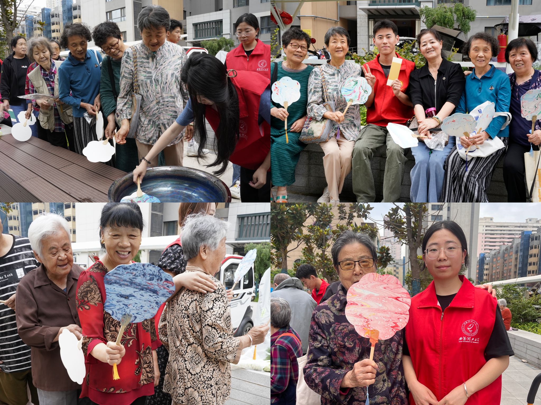 志愿者们现场介绍了非遗文化大漆的来源,他们“艺”漆为笔,“艺”水为画,讲解演示了漆扇的制作过程,并同社区老教师们围绕“大漆的传承流变、艺术质感与精神内涵”进行了讨论与交流。为了让居民们更切实地感受非遗文化大漆的魅力,志愿者还在现场对参与者们就挑选漆液、绘制图案等步骤进行一对一的体验指导。