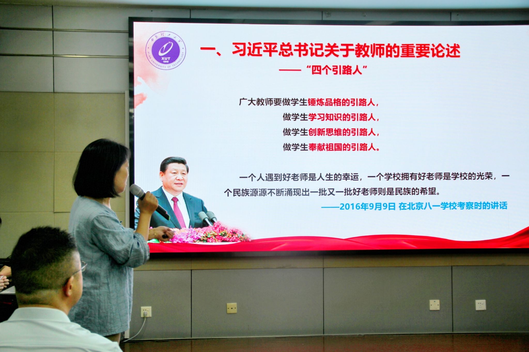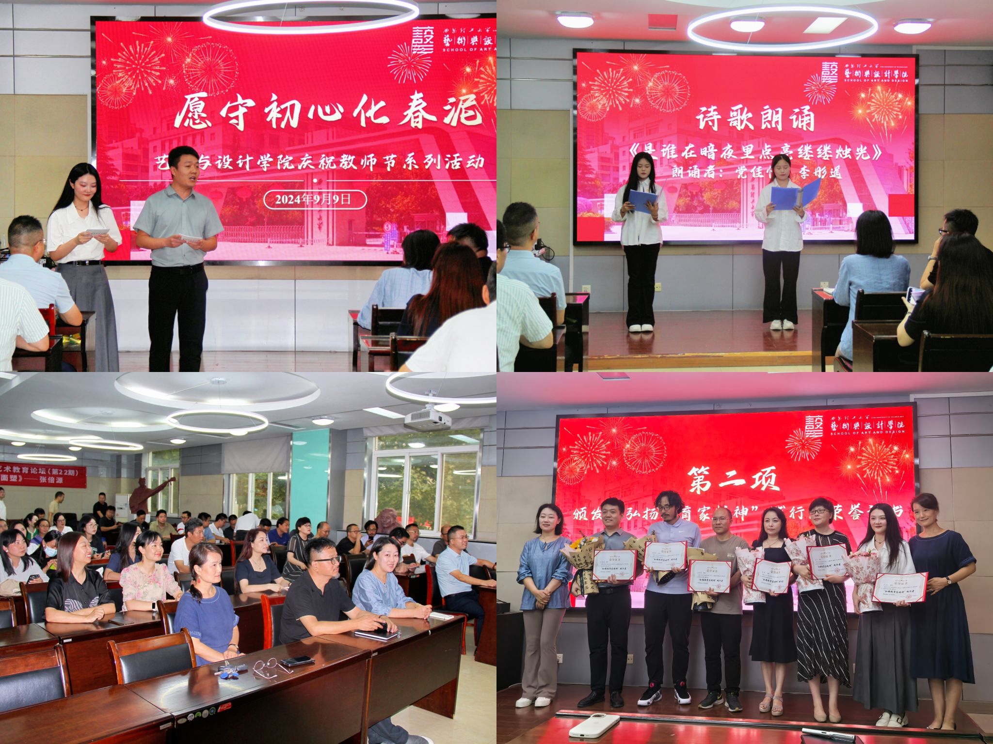 为大力弘扬教育家精神,展示公司广大教师爱党爱国、立德树人、自信自强的精神风貌,9月9日下午,在第40个教师节来临之际,申博sunbet在教学12号楼举办了“愿守初心化春泥”庆祝教师节系列活动。活动由学工办主任郑智聪、院团委负责人赵婷共同主持,全体公司教师参与其中。