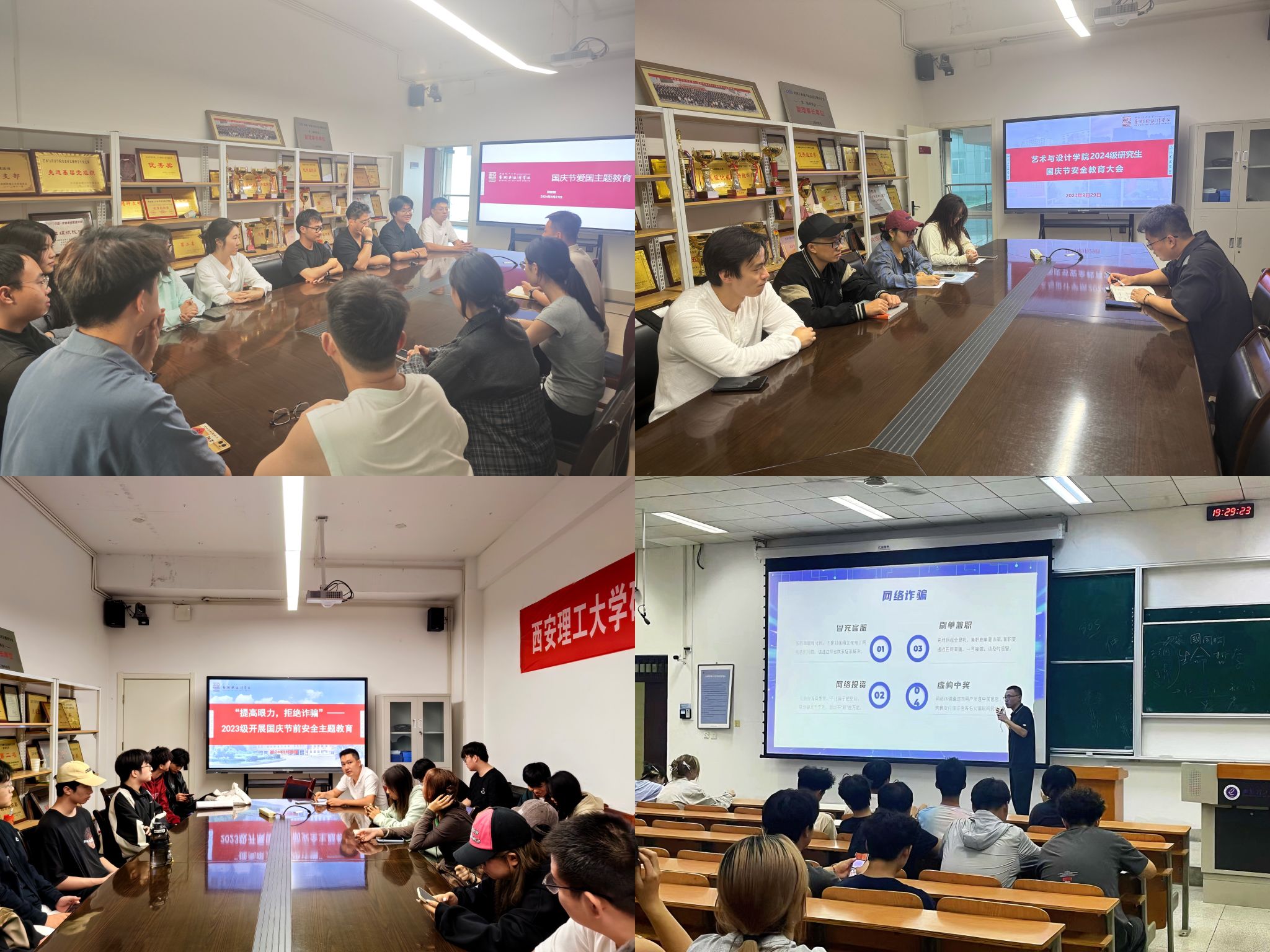 安全教育全面展开。各年级辅导员通过召开年级会、班委会等形式开展安全教育,结合实际情况,重点讲解了用电安全、消防安全、防盗防骗、依法上网等方面的知识,教育引导员工做自身安全责任“第一人”,使同学们不仅增长了安全知识,还增强了自我保护意识。