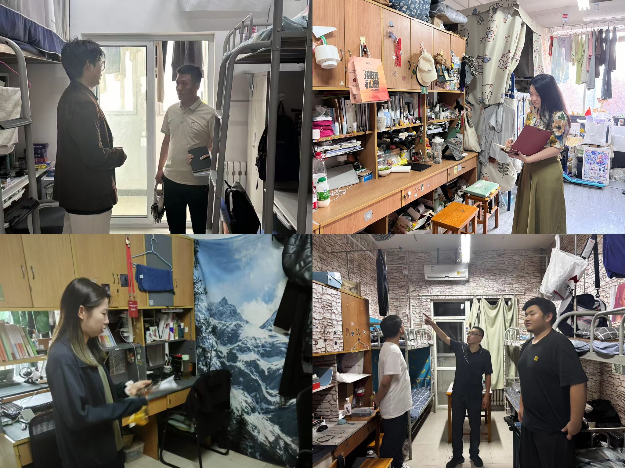 宿舍检查细致入微。各年级辅导员对全院员工宿舍进行了安全检查,重点排查了私拉乱接电线、使用大功率电器、堆放易燃物品等安全隐患,并对发现的问题现场提出整改意见,要求整改到位,确保不留死角,不存隐患。同时,就宿舍安全管理规定向员工进行解读和强调,提醒员工自觉遵守宿舍管理制度,共同维护宿舍安全。