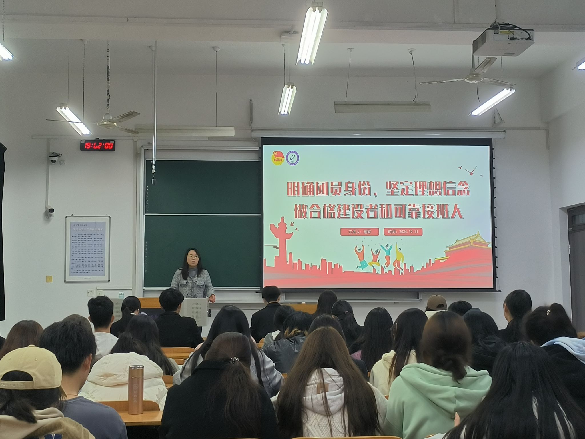 荆霄以《明确团员身份,坚定理想信念,做合格建设者和可靠接班人》为题,从共青团的发展历史、明确团员身份、做好团员管理、网上共青团四个方面,详细地阐述了团员的权利与义务,以及共青团员如何发挥先锋模范作用,让同学们对共青团有了更明确的认识。
