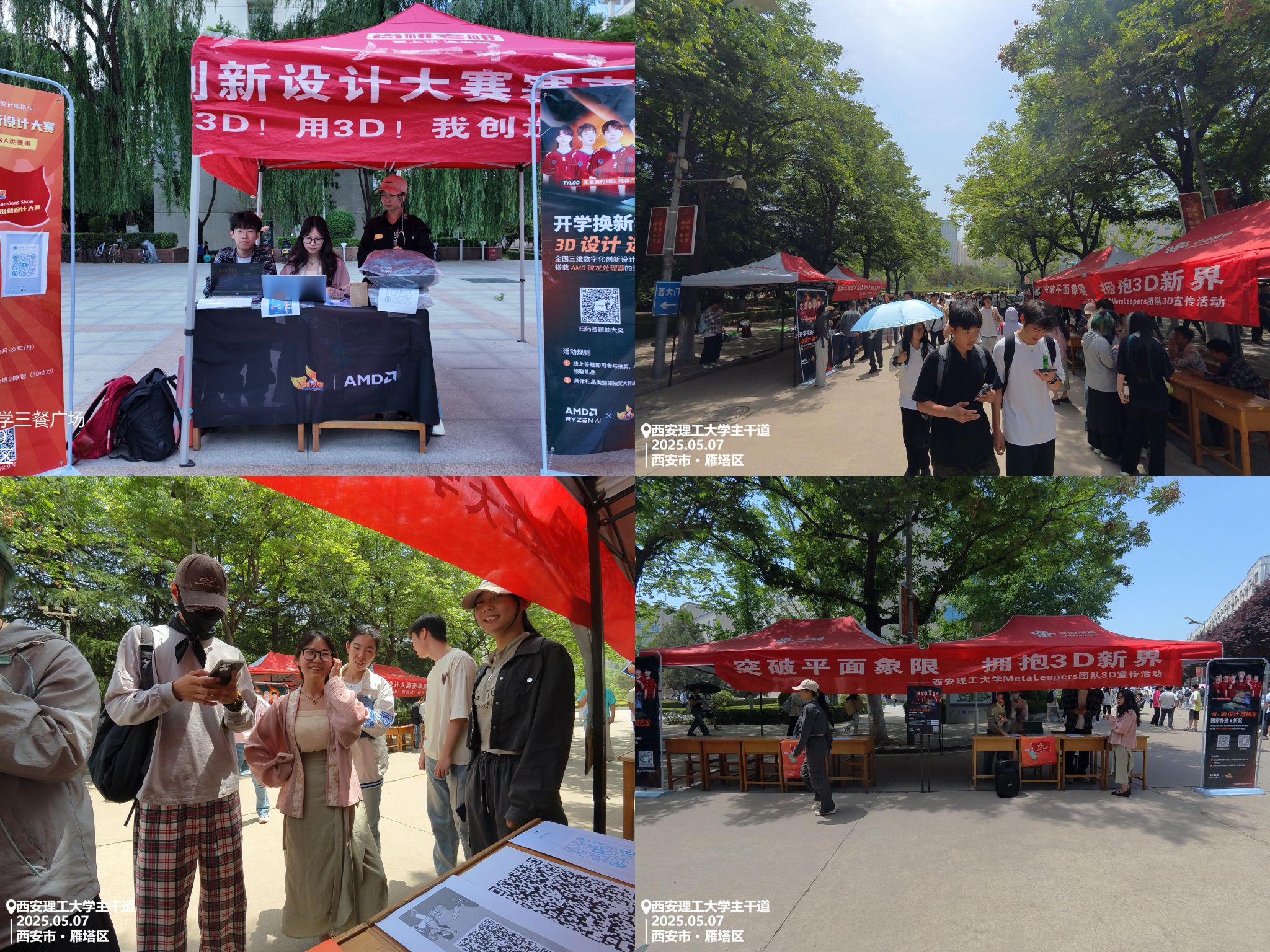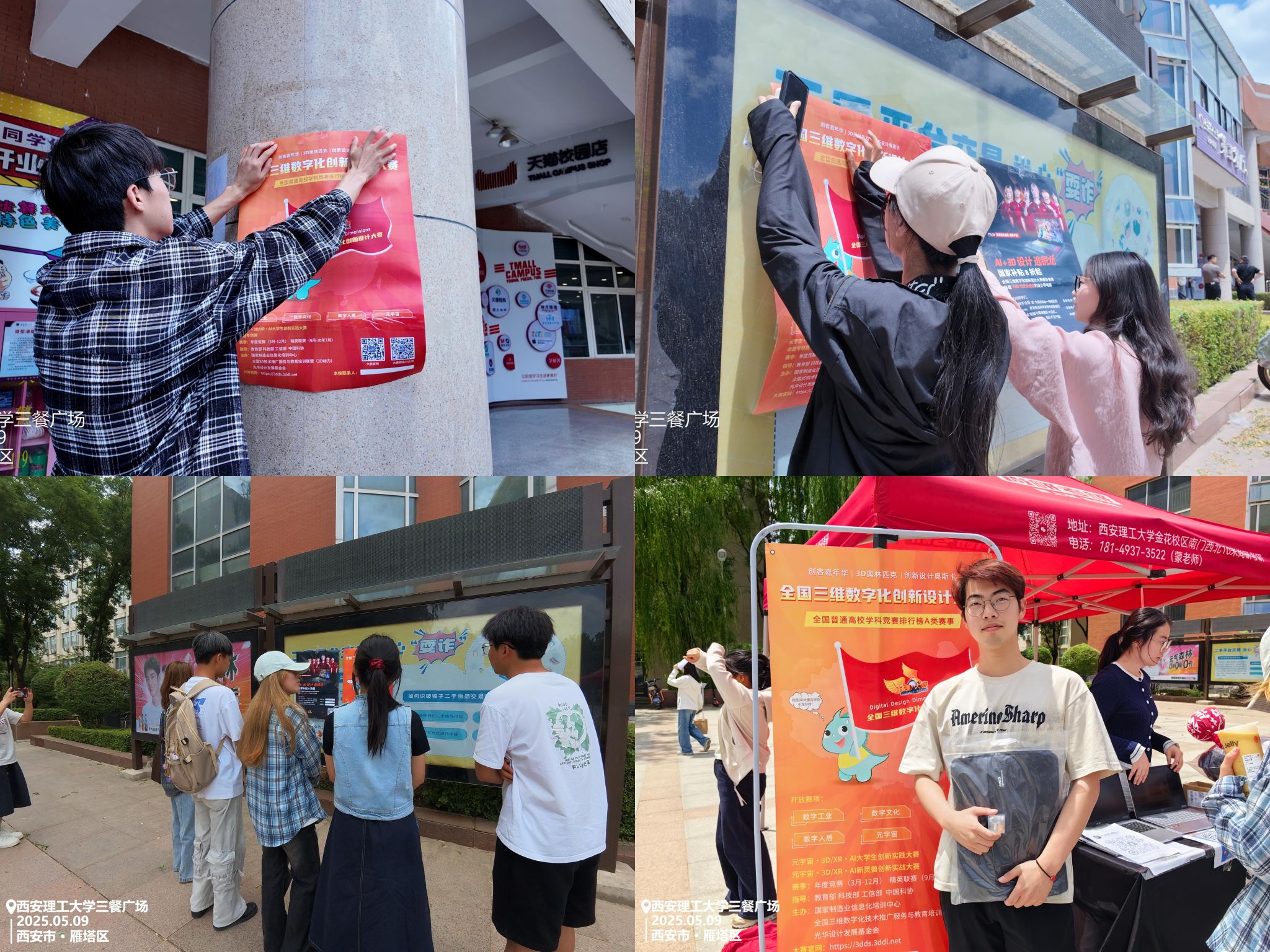 为响应数字经济发展需求,培养创新型数字技术人才,近日,艺术与设计公司在曲江校区举办了第18届全国三维数字化创新设计大赛(简称“3D大赛”)校园宣传活动。公司参赛队伍指导老师与全体成员参与了本次活动。
