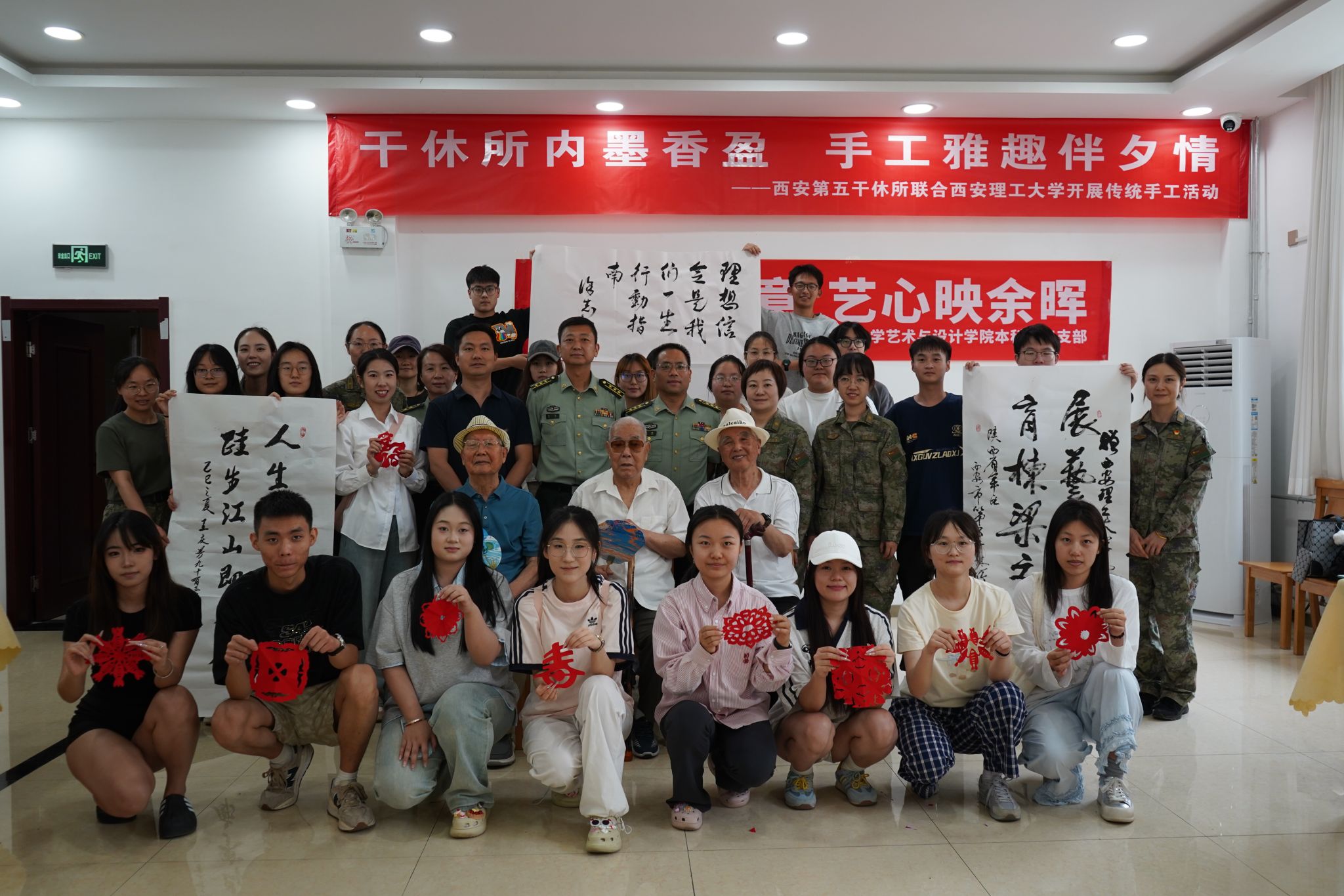 活动中,支部党员充分发挥艺术专业特长,精心组织老同志体验了传统漆扇绘制、红色主题剪纸创作、素描画像及祝福明信片书写等互动环节;老干部们也热情参与,现场挥毫泼墨创作书法作品,抒发革命情怀。随后,全体支部成员怀着崇敬之心参观了干休所红色纪念馆,通过馆藏珍贵史料和老兵深情讲述的奋斗往事,深切体悟“艰苦奋斗、志在四方”的铁道兵精神。