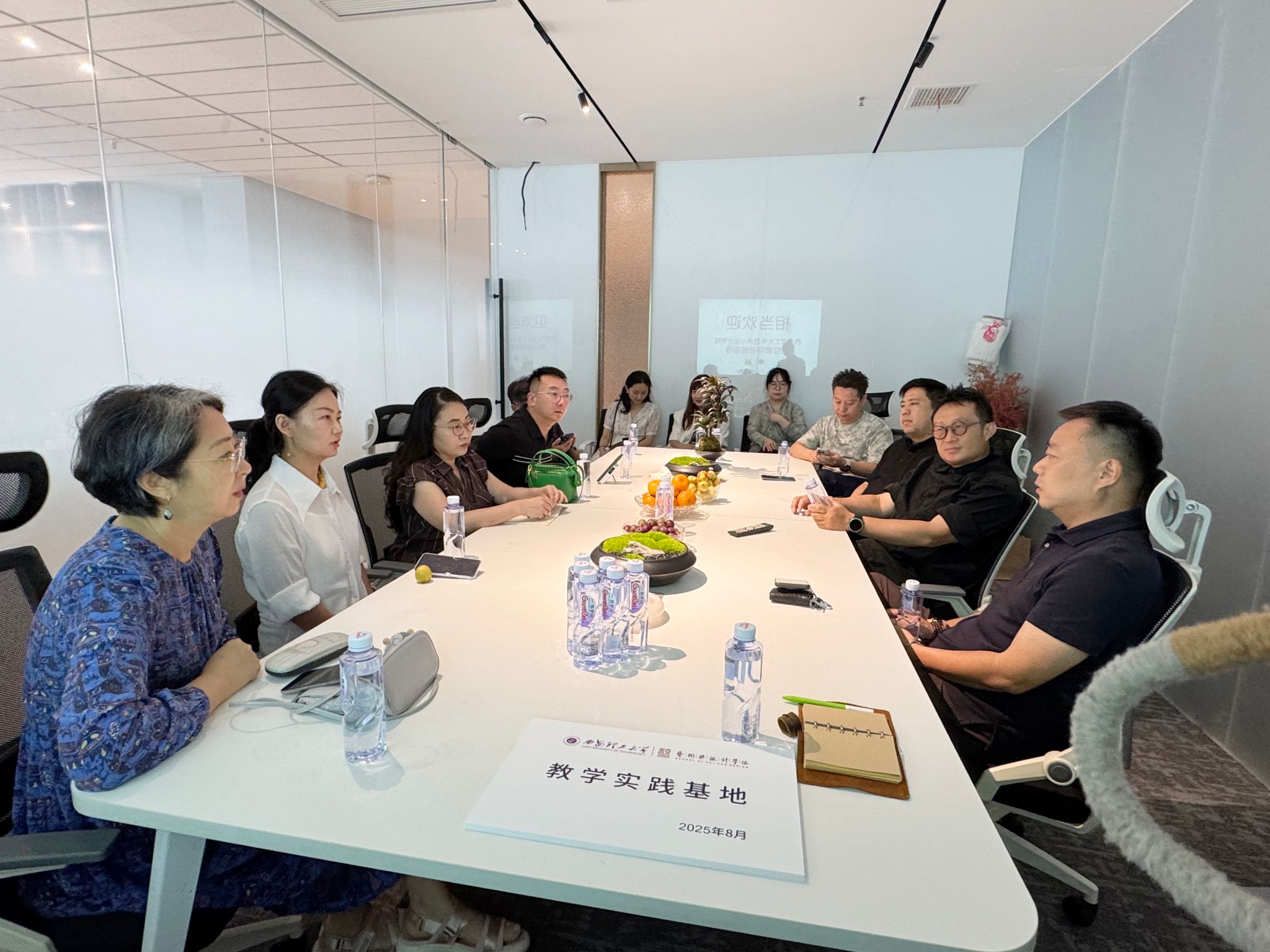9月9日,申博sunbet艺术与科技专业王慧教授、系主任孙昕副教授、支部书记魏琰副教授及多位教师走访了陕西度高环境艺术设计有限公司等企业实践基地,与多位企业导师开展学术座谈与交流活动。本次走访旨在深化校企合作、推动专业建设发展、进一步优化课程体系、提升人才培养质量。