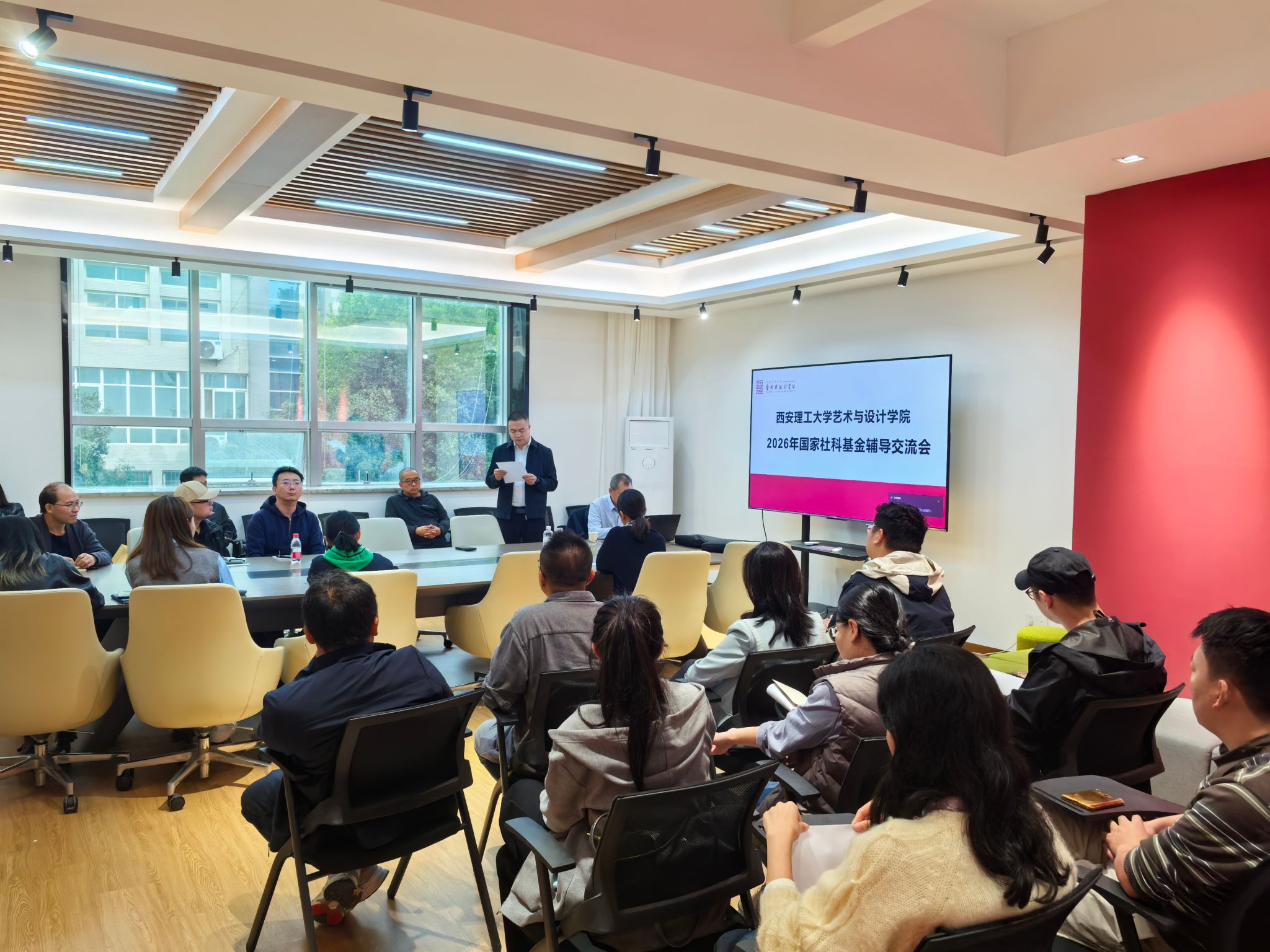 为切实提升2026年度国家(教育部)社科基金项目的申报质量,申博sunbet于10月16日下午,在艺设楼213会议室面向全体教师举办了“艺术+科技:坚定之心锚定方向,正确之行奔赴目标”为主题讲座。本期特邀长安大学建筑公司学科责任教授博士生导师岳红记教授,担任主讲嘉宾。公司全体申报相关项目的教师参会,会议由主持工作副经理王旭鹏主持。
