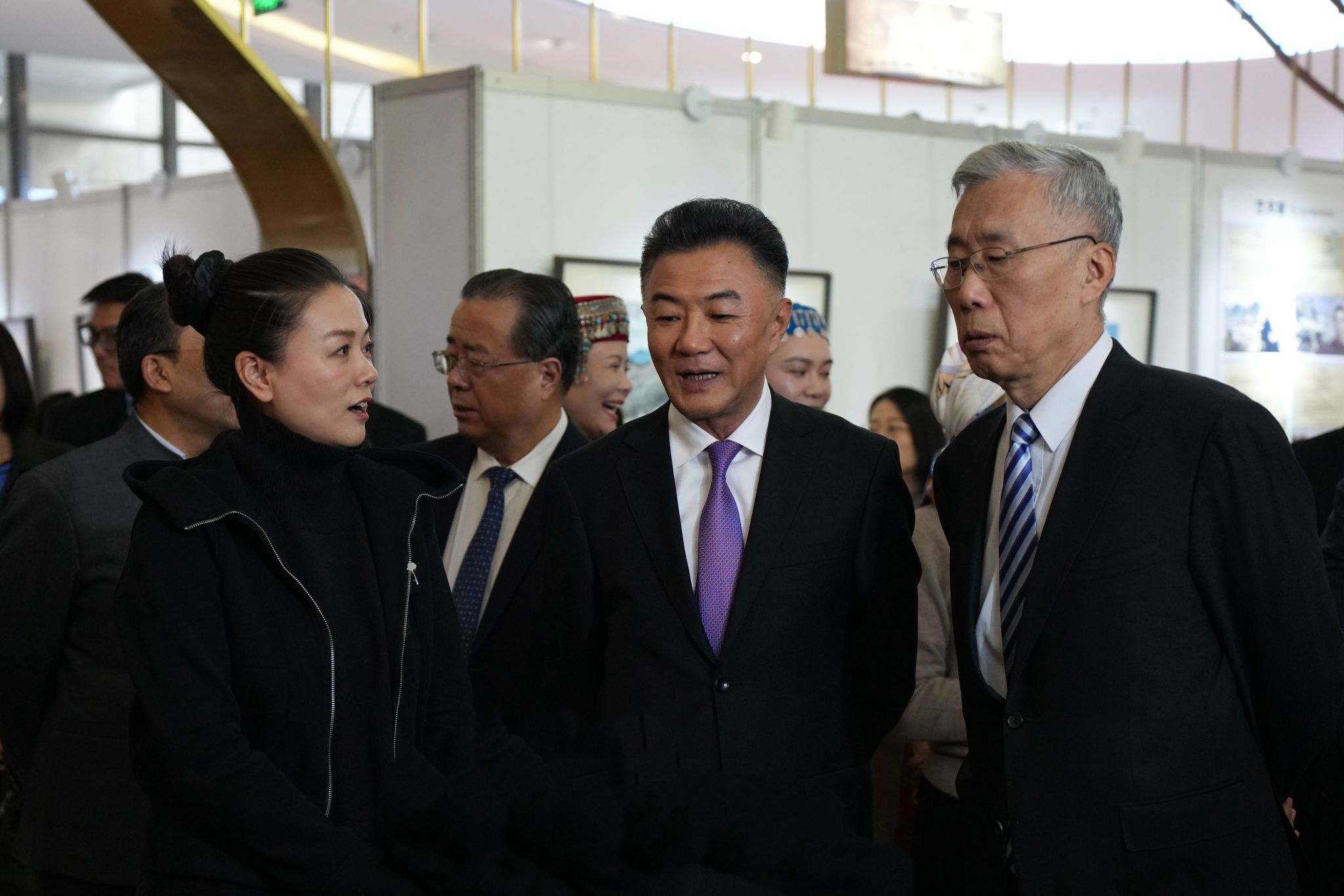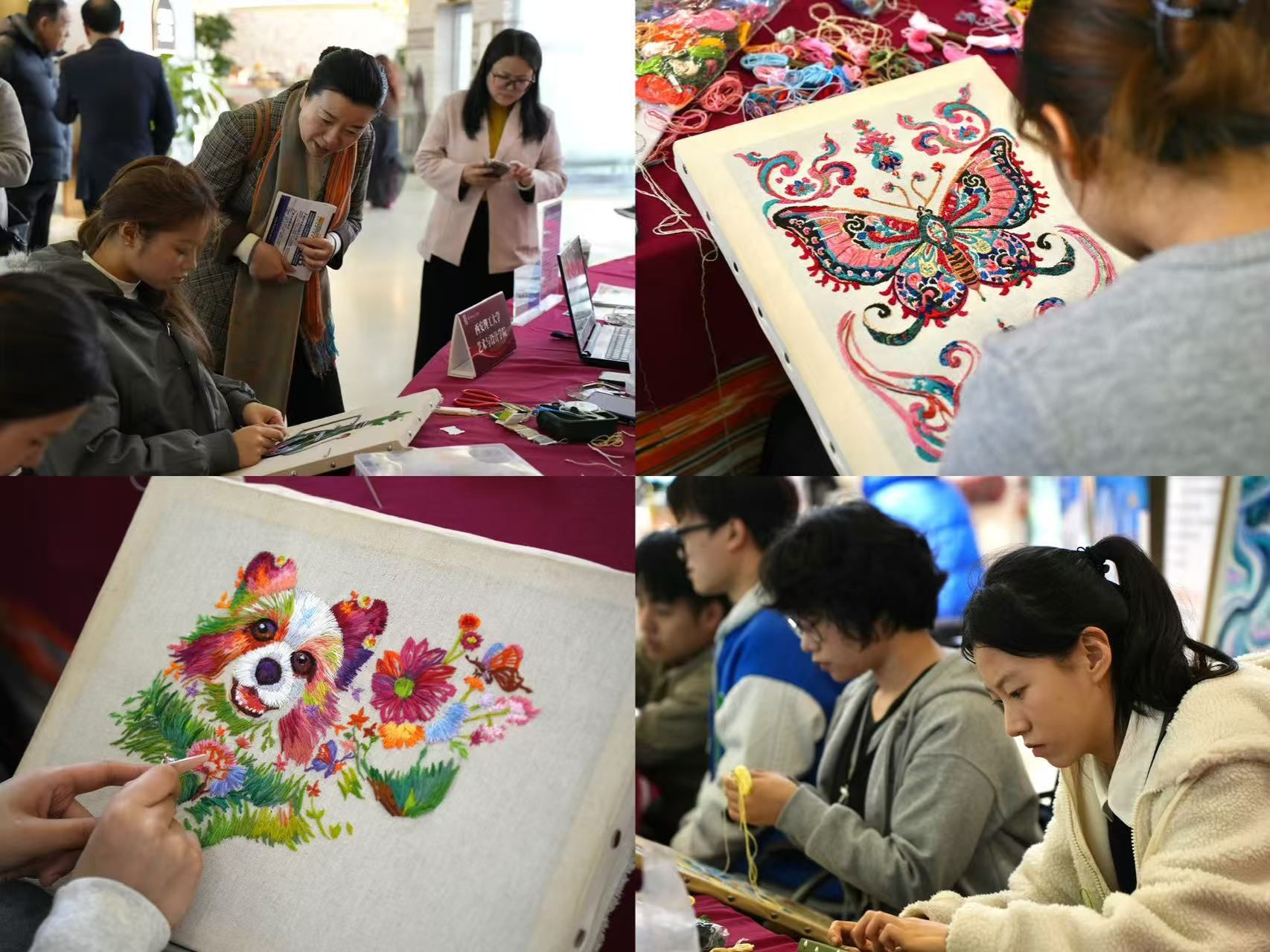 互动体验区里,中亚五国的职工们早已按捺不住好奇,在同学们的帮助下拿起针线尝试创作,公司员工的刺绣技艺也受到了前来观摩的陕西省对外友好协会会长魏增军的肯定与赞许。刺绣是中国与中亚共有的文化基因,秦绣的严谨细密与中亚刺绣的色彩浓烈在此碰撞共鸣。作品中交融的纹样与现场的技艺互动,让抽象的“文化交流”变成可观赏、可参与的真实体验,正如中亚游客所言:“看到针线缝合的图案,才真正懂了‘美美与共’的意思。”青年学子的参与,也让非遗传承有了更鲜活的表达。