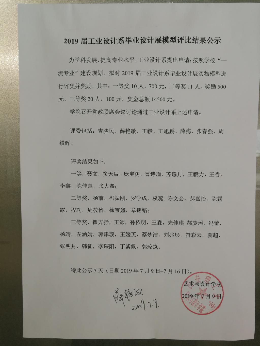 2019工业设计系毕业设计展模型评比结果公示