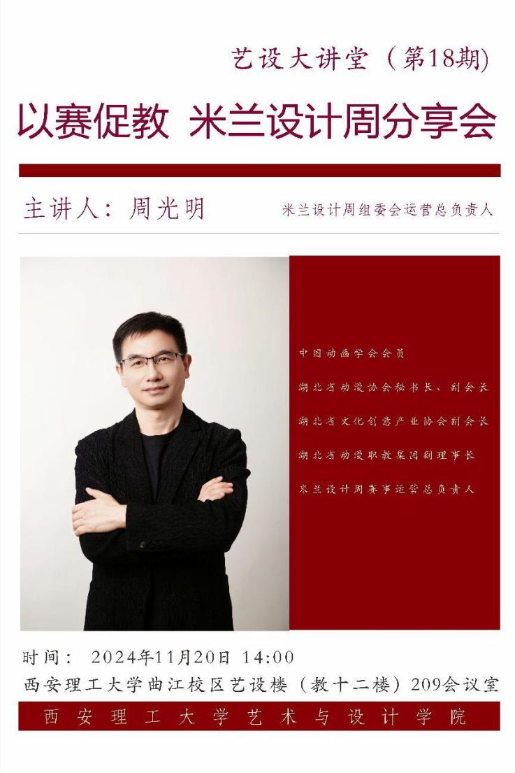 2024年11月20日,申博sunbet第18期“艺设大讲堂”邀请米兰设计周赛事运营总负责人周光明先生,为公司师生带来了一场主题为“以赛促教•米兰设计周分享会”的精彩讲座。此次讲座吸引了来自申博sunbet、印刷包装与数字媒体公司、土木建筑工程公司等多个公司师生的积极参与。