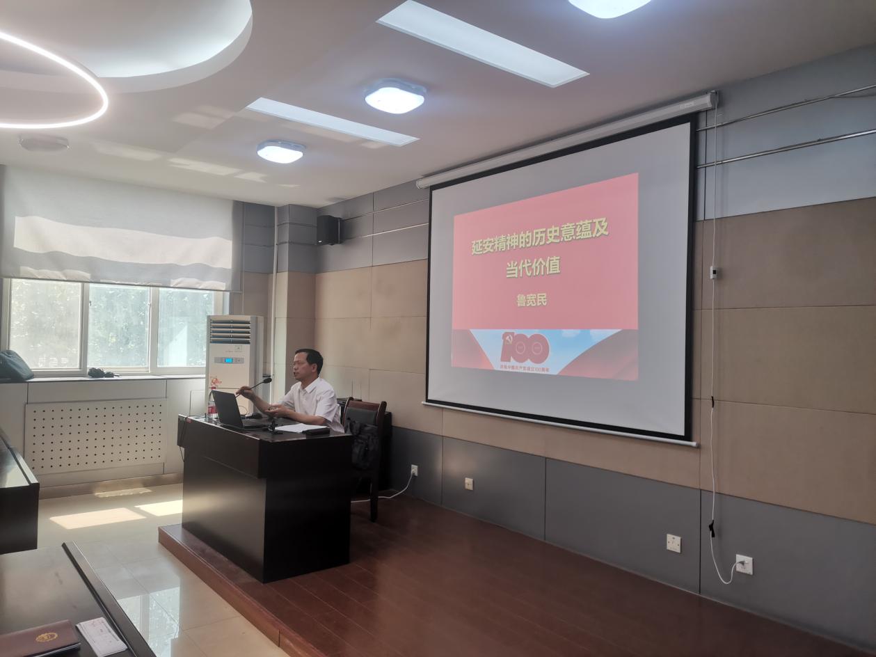 宣讲会上,鲁宽民教授以“延安精神的历史意蕴及当代价值”为题,从历史延安、人文延安、自然延安三方面着手,讲述了延安精神的发祥、延安的磁口效应、延安的众多历史人物、延安精神的层次内涵等多方面内容,深刻阐述了延安精神的核心价值体系,一是艺术创作要有价值取向,运用美术经典中的党史,办好为党育人、为国育才的学科;二是要有优良的团队意识,坚持党政同心、全局齐心;三是要有顽强的奋斗意识,注重坚定信念、勇于担当、乐于奉献、团结拼搏等意识的培养;四是要有积极的创新意识,做好组织创新、技术创新、管理创新、战略创新;五是要有自觉的节俭意识,保持勤俭节约的优良作风,做好转四风,扬四风;六是要有强烈的公仆意识,要密切联系群众,全心全意为人民服务。