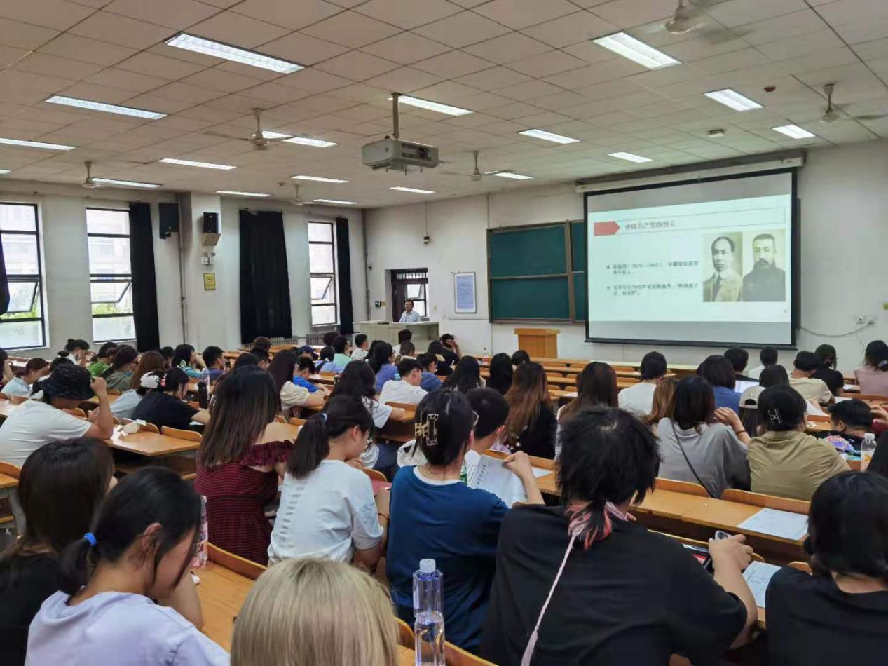 宣讲会上,易鹏老师以“学习百年党史 感悟思想伟力 激发青春力量”为题,从思想建党理论强党——百年大党辉煌的关键、深刻学习领会新时代党的创新理论、理论照亮现实——党的创新理论最新成果激发青春力量三个方面回顾了中国共产党的重大历史,阐述了重要理论,以及论证了中国共产党带领全党全国人民全面建设社会主义现代化国家的丰富实践成果。
