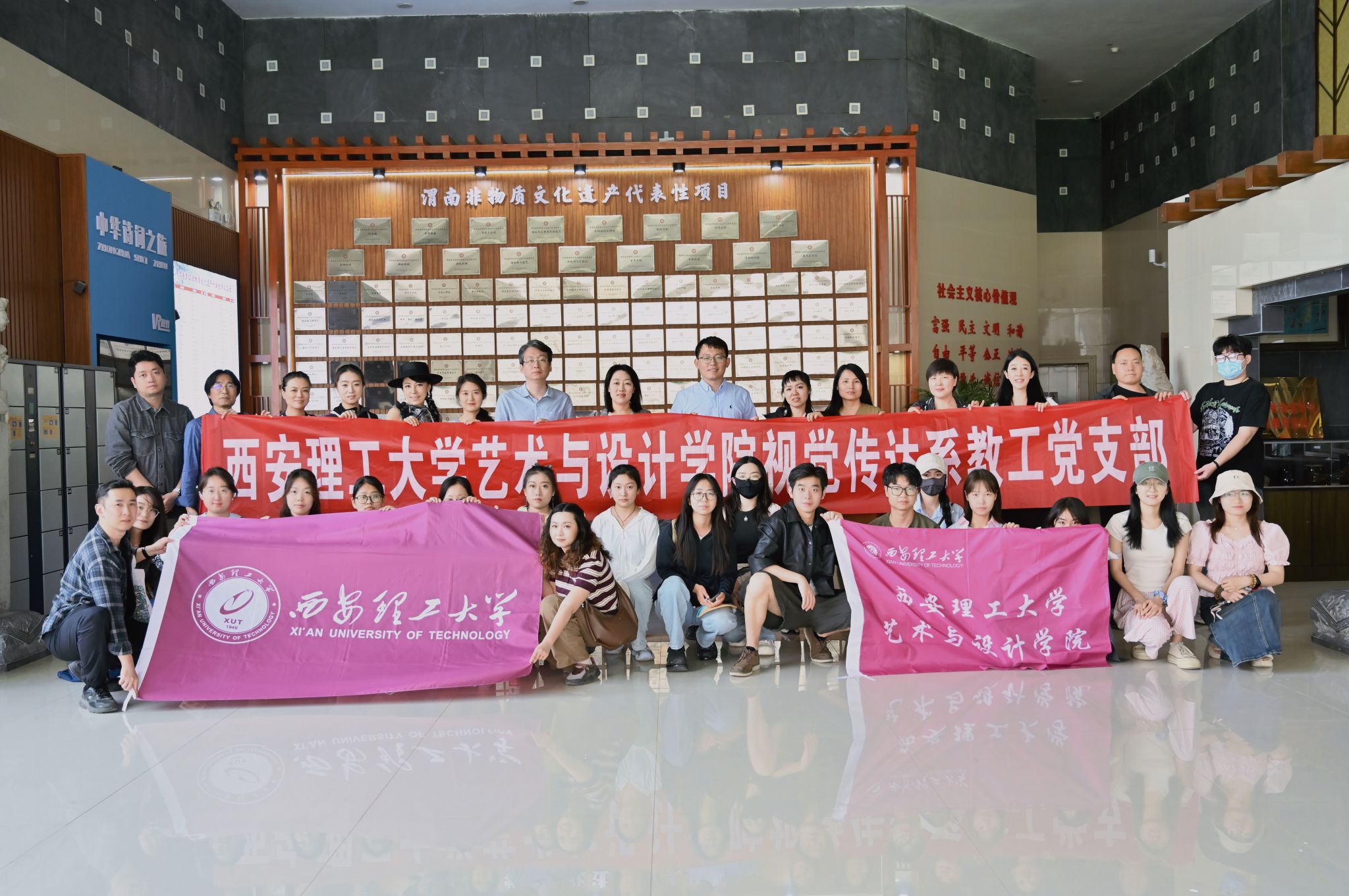 为深入学习贯彻习近平总书记关于文化遗产保护与红色基因传承的重要指示精神,申博sunbet视觉传达系教工党支部于4月18日组织师生党员及民主党派教师赴陕西省渭南市开展“非遗文化传承与红色精神弘扬”主题党日活动。活动以“非遗技艺体验+红色历史教育”为主线,通过探访渭南市非遗文化传习馆、华州区皮影文化园,深入渭南市华州区张桥村红色教育基地,将非遗传承与红色基因有机融合,为新时代党建工作注入文化活力与精神动能。