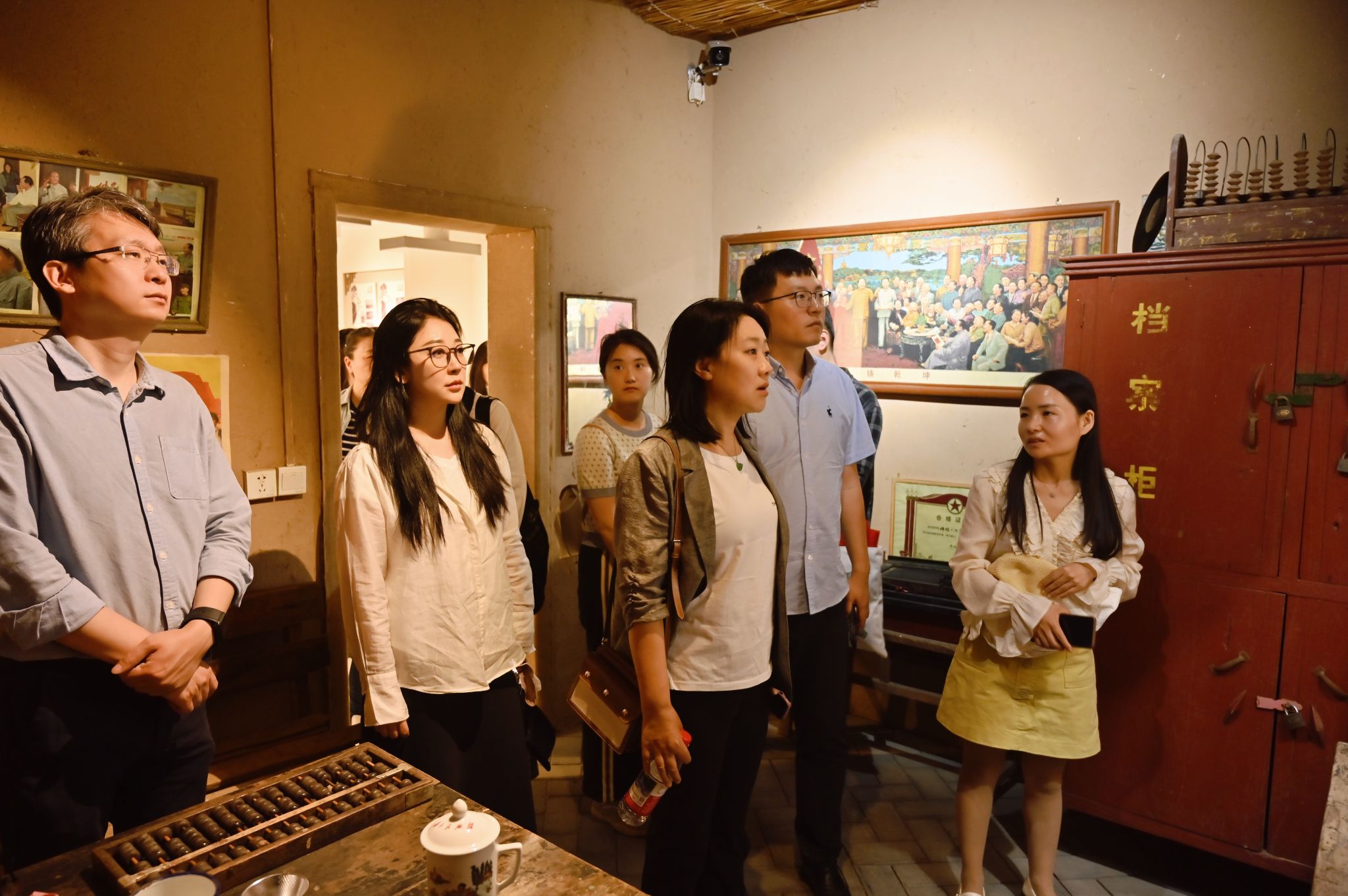 在渭南市非遗文化传习馆,通过现场讲解与参观,系统了解了渭南地区皮影、剪纸、面花等非遗技艺的历史渊源与文化内涵。场馆以不同功能区进行非遗展示,通过民间文学展区(展示渭南神话传说、民间故事文本及影像资料)、传统戏剧展区(重点呈现华阴老腔、华州皮影戏、同州梆子等地方戏曲的戏服、道具、剧本及历史文献)、传统美术展区(陈列剪纸、面花、泥塑、皮影雕刻等非遗艺术品,如“渭北风情泥塑”400余件人物造型,生动还原农村集市场景)、传统技艺展区、民俗展区(复原关中四合院场景,展示婚丧嫁娶、节庆习俗相关器物,如花苫鼓表演道具、刺绣服饰等)等五大展区,生动展现了非遗技艺与时代精神的交融。