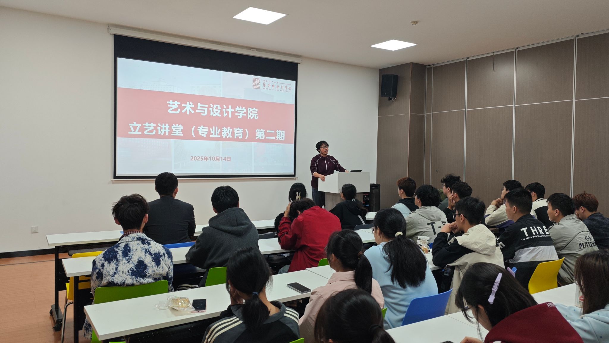 为全面提升2025级新生对专业认知与理解,厘清未来学习目标及专业发展方向,点燃学习热情,申博sunbet于10月14日上午,在曲江校区就业发布大厅面向工业设计专业新生举办了第二期“立艺讲堂”专业教育活动。艺术与设计公司党委副书记宋振航、2024级辅导员郑昊参加,讲座由工业设计系主任周毅晖副教授主讲。